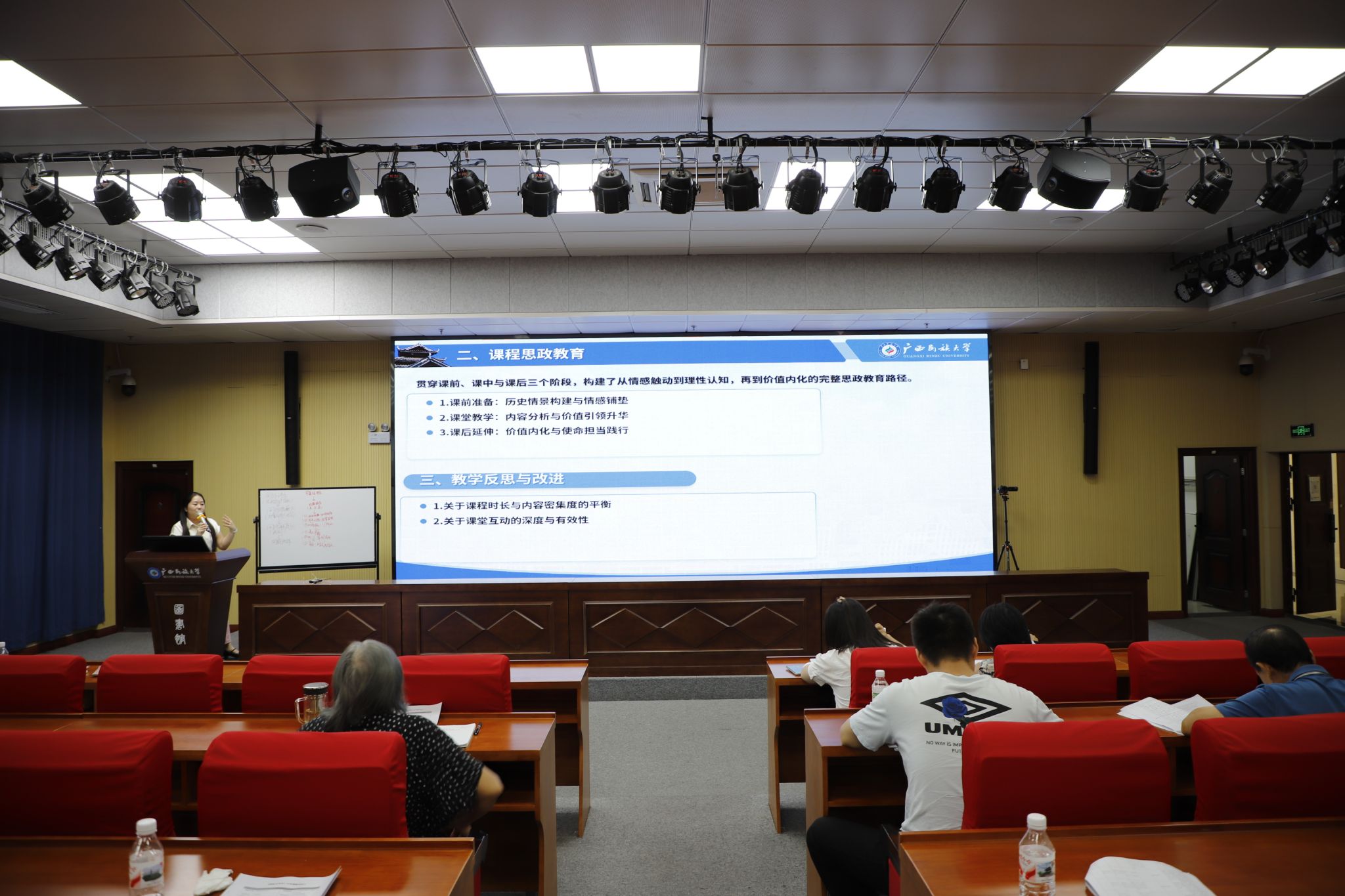 赵师苇以华盛顿会议的形成、影响与实质为主线,深入剖析了华盛顿体系下的东亚格局与秩序,并引导学生对国际体系、国际格局及“百年未有之大变局”这一历史判断展开深入思考。课后,赵师苇详细讲解了《国际关系史》课程的教学设计思路,包括基于OBE理念的课程框架构建、针对大二学生的学情分析、设定知识、能力、素养三层的教学目标,以及通过课前微视频、课堂理论框架贯穿、课后分层作业等方式实现课程思政的完整设计,并反思了课堂时长把控、互动交流等教学实践中的改进空间。