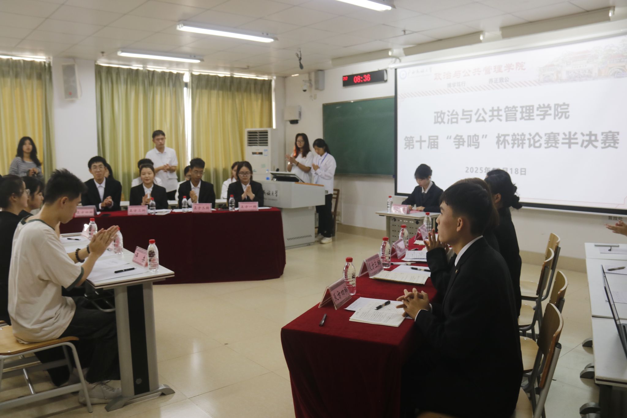10月18日上午,政治与公共管理学院第十届“争鸣杯”辩论赛半决赛于国际教育综合楼717室举行。半决赛分为两场,参赛队伍由2025级政治学与行政学2班、2025级政治学与行政学3班、2025级行政管理2班、2025级行政管理班3,共四支队伍组成。